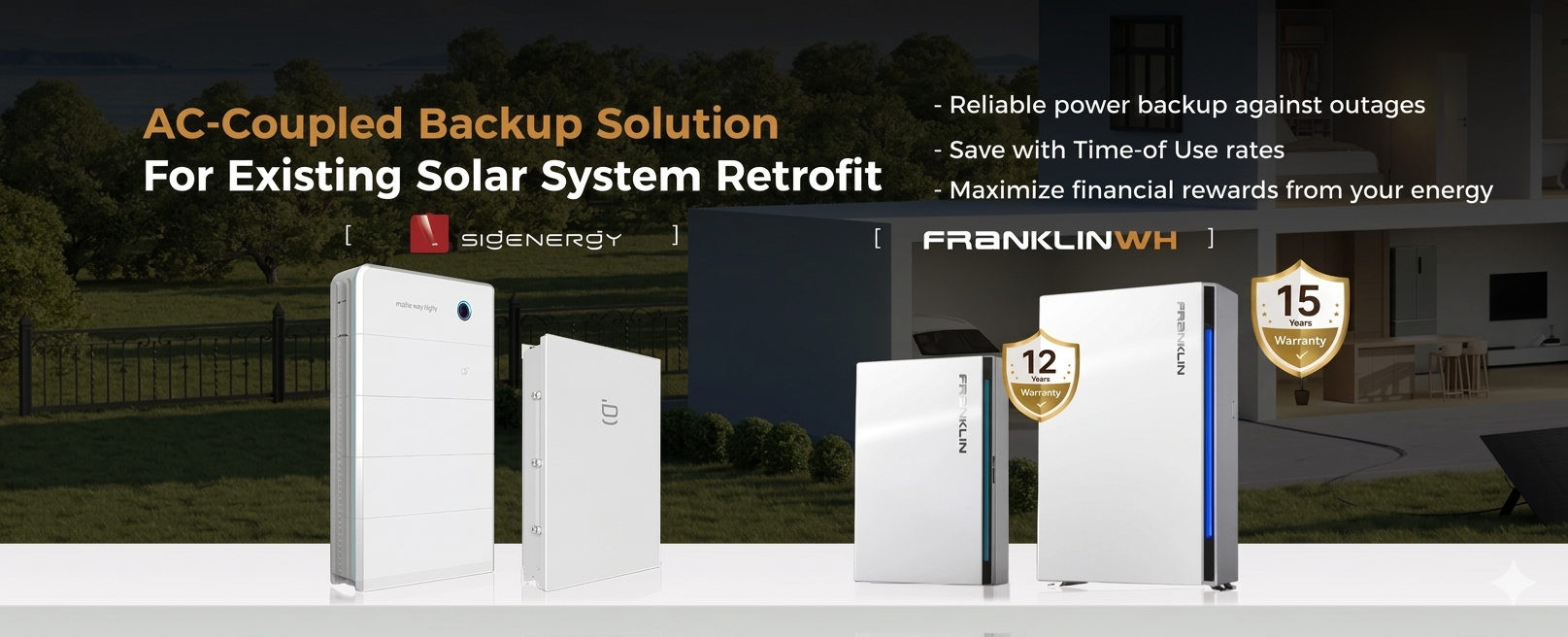 From whole home backup , AC-Coupled for existing solar retrofit , off-grid system for farm, to commercial & industry storage, we tailors energy solutions to power you every day!